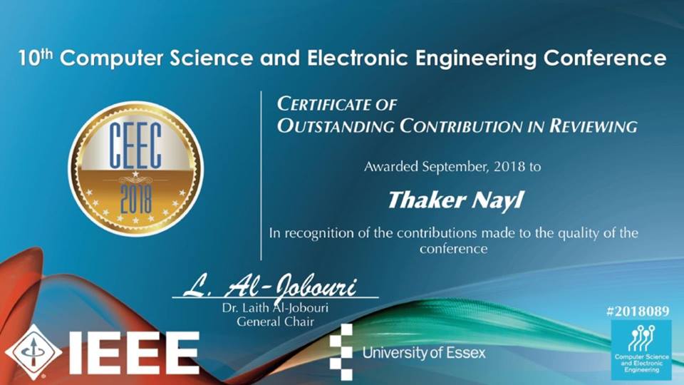 Dr. Thaker has been chosen for more than once as the arbitrator and evaluator of scientific research published by the British University at its annual conference held with the participation of IEEE (Computer Science and Electronic Engineering Conference).
