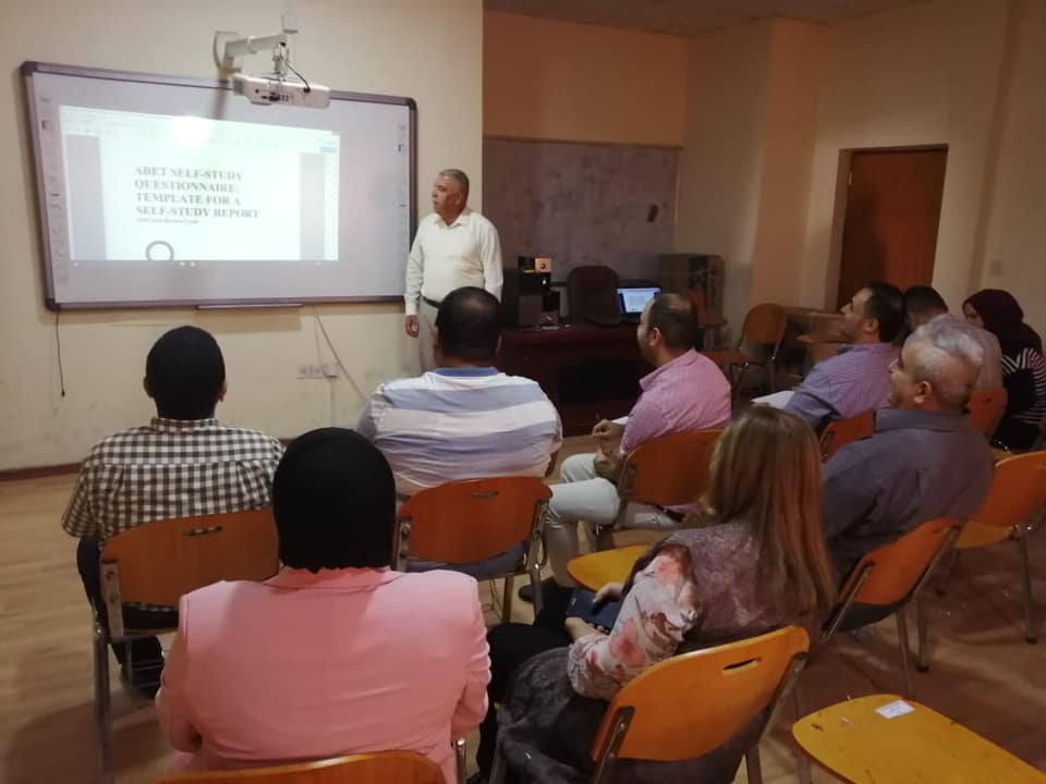 The workshop was held to prepare academic departments for self-assessment and to identify weaknesses in order to overcome them and to highlight the strengths for the purpose of strengthening and sustaining and then to write a self-assessment report.