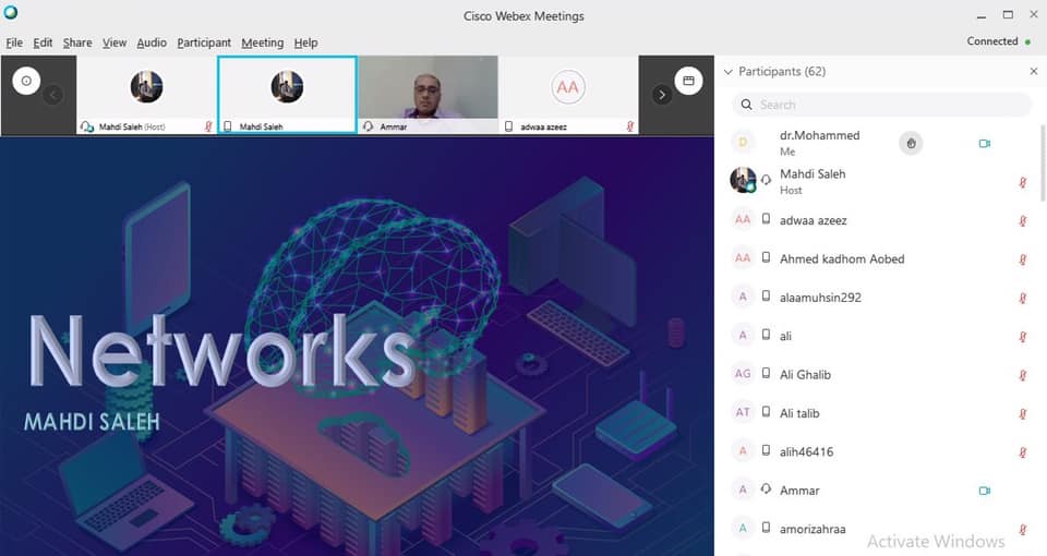 This workshop is considered the basic infrastructure in the field of networks because it contains the most important columns in this field, and more than 60 students from the university and various Iraqi universities participated in it.