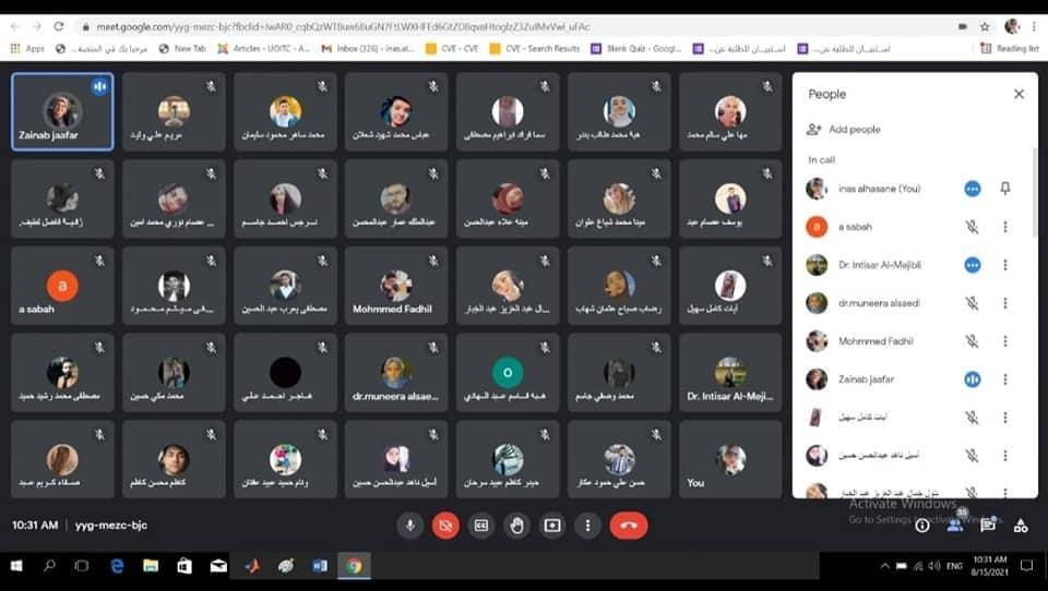 The BMI of UOITC held a virtual symposium about the wise Use of Social Media for the students and employees as part of the programs of students Education and guidance to avoid the dark side of social media, the lecturers were the teachers of social guidance in the College developments Zainab Jaafer and Enass Adnan. The lecturers covered rising the awareness of participants to avoid harm of others
