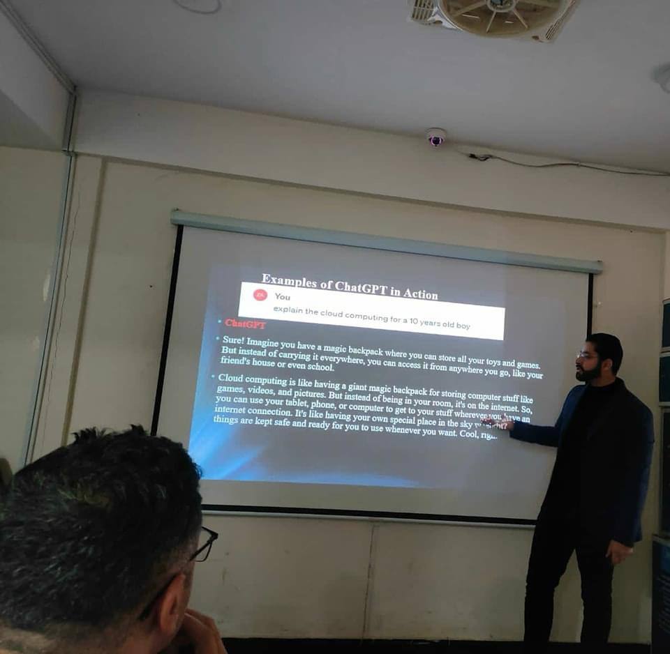 The symposium was delivered by lecturers at the college, Assist. Lect. Safana Zaid Ahmed and Assist. Lect. Zaid Ali Sa’eed, and during the symposium, an overview of the ChatGPT application and some modern techniques in digital technology and its uses was discussed, and the impact of this use on society through the use of artificial intelligence applications in all areas of life such as engineering, medical, media and educational.