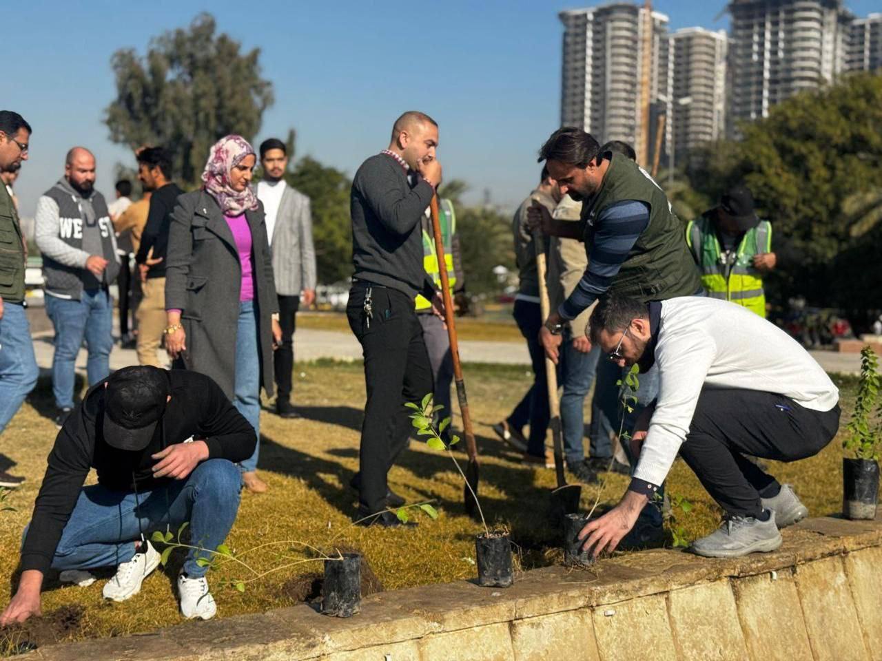 The College of Medical Informatics at the University of Information Technology and Communications organized a tree-planting campaign in cooperation with the Municipal Awareness Department and the Municipality of Al-Karkh in the Inqath El-Iraq Square. Several college students and professors participated in this campaign, which was organized by Assistant Lecturer Ali Abdul Qader, the head of the Student Activities Division at the college. Representatives of the Karkh Center Municipality praised the initiative’s importance in enhancing environmental awareness among the youth, Iraqi society’s various segments, and academic elites.