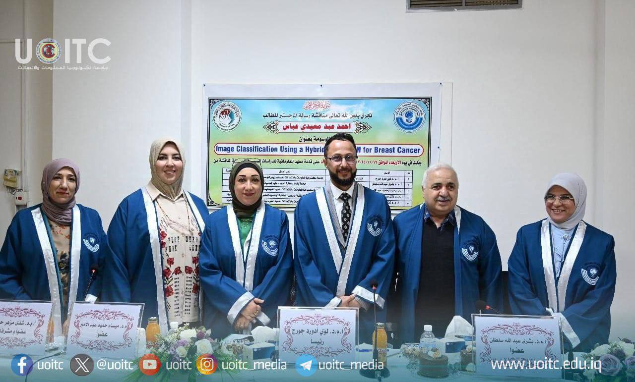 A master’s thesis by student Ahmed Abed Maidi was discussed at the University’s Informatics Institute for Postgraduate Studies. The master’s thesis, entitled Classification of Breast Cancer Images Using (Hybrid LSTM – CNN), dealt with the method of integrating BiLSTM with CNN in order to develop a new model for image classification applications. The discussion concluded with the student obtaining a master’s degree with a very good grade in the field of computer science.