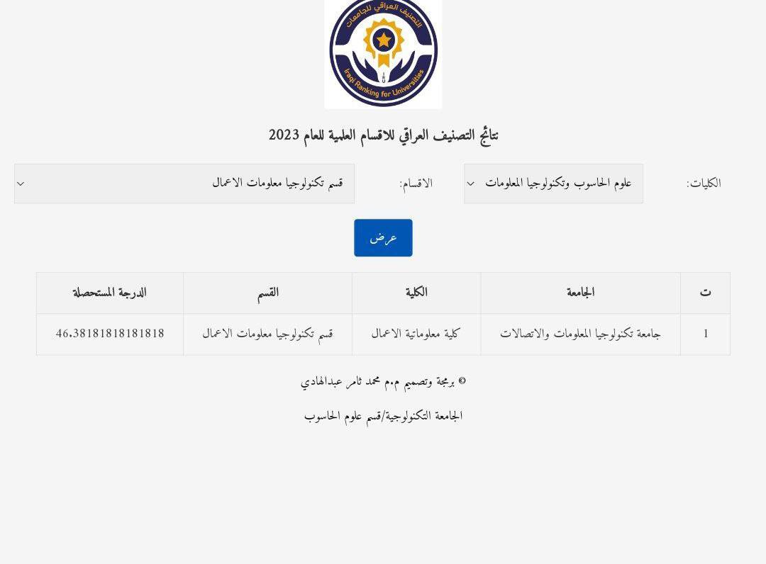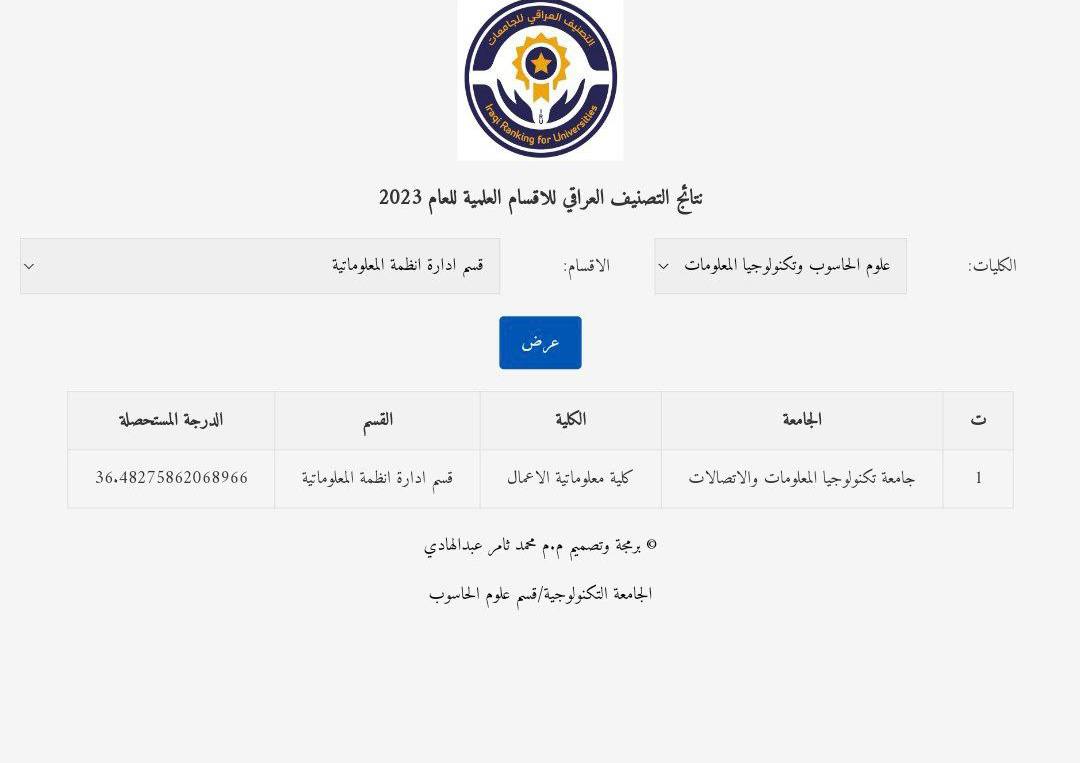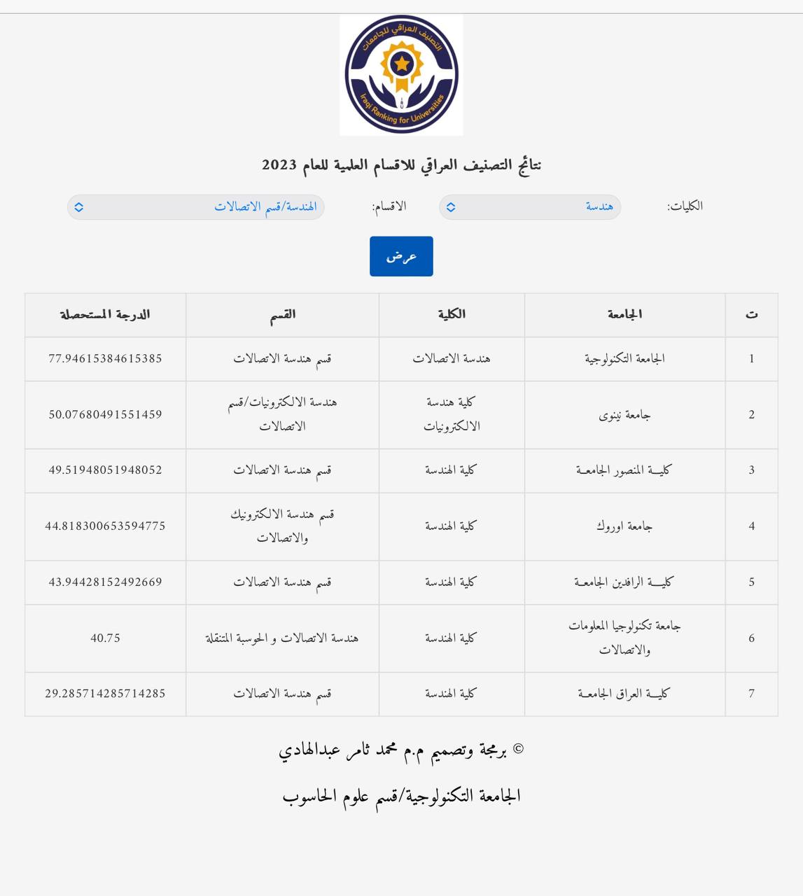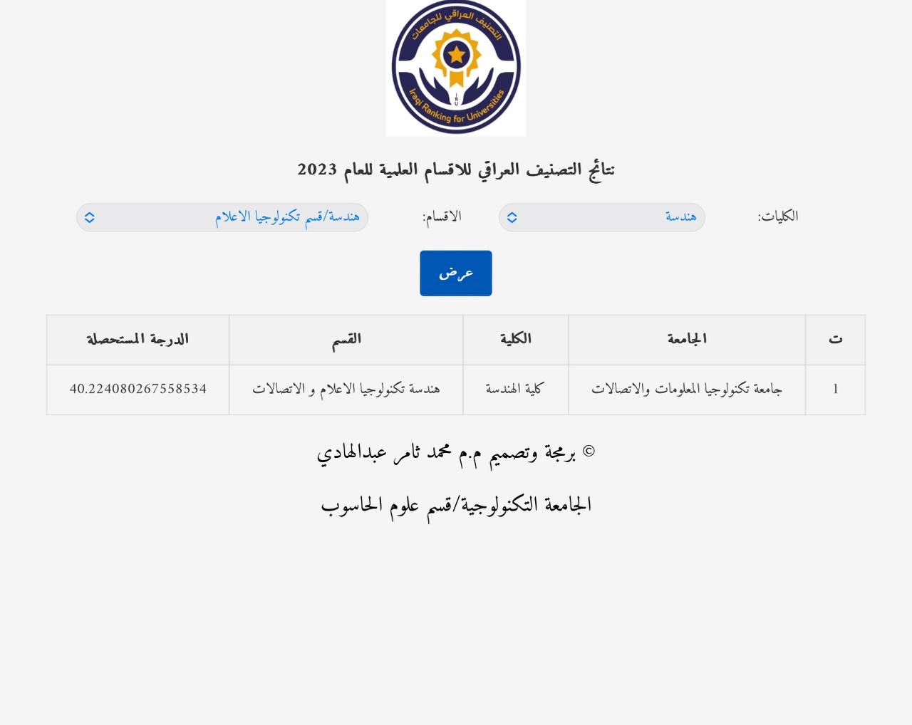 The scientific departments in the Faculties of Business Informatics and Engineering at the University of Information Technology and Communications achieved good results in the Iraqi classification of scientific departments of Iraqi universities for the year 2023.