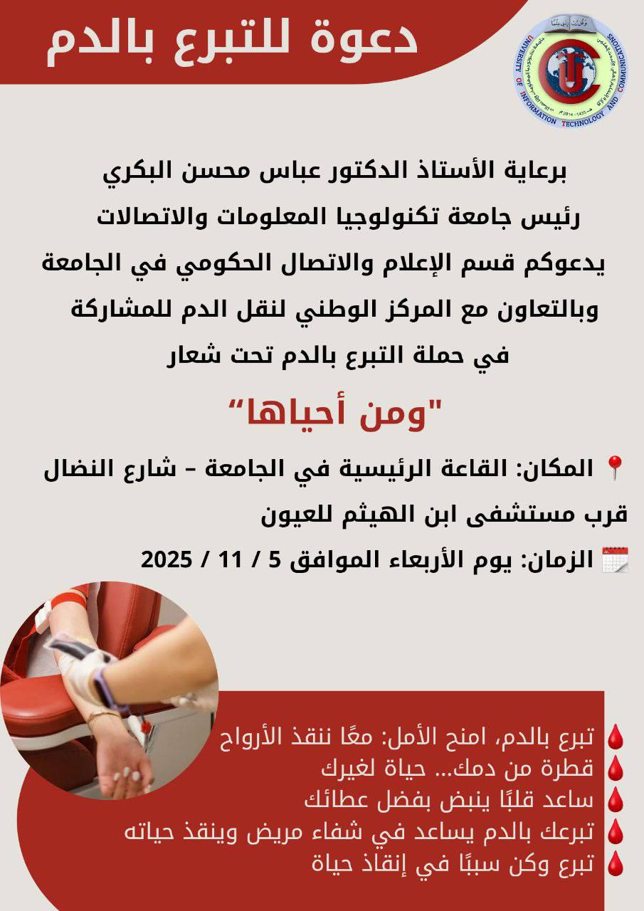 Under the patronage of Professor Dr. Abbas Mohsen Al-Bakri, President of the University of Information Technology and Communications,