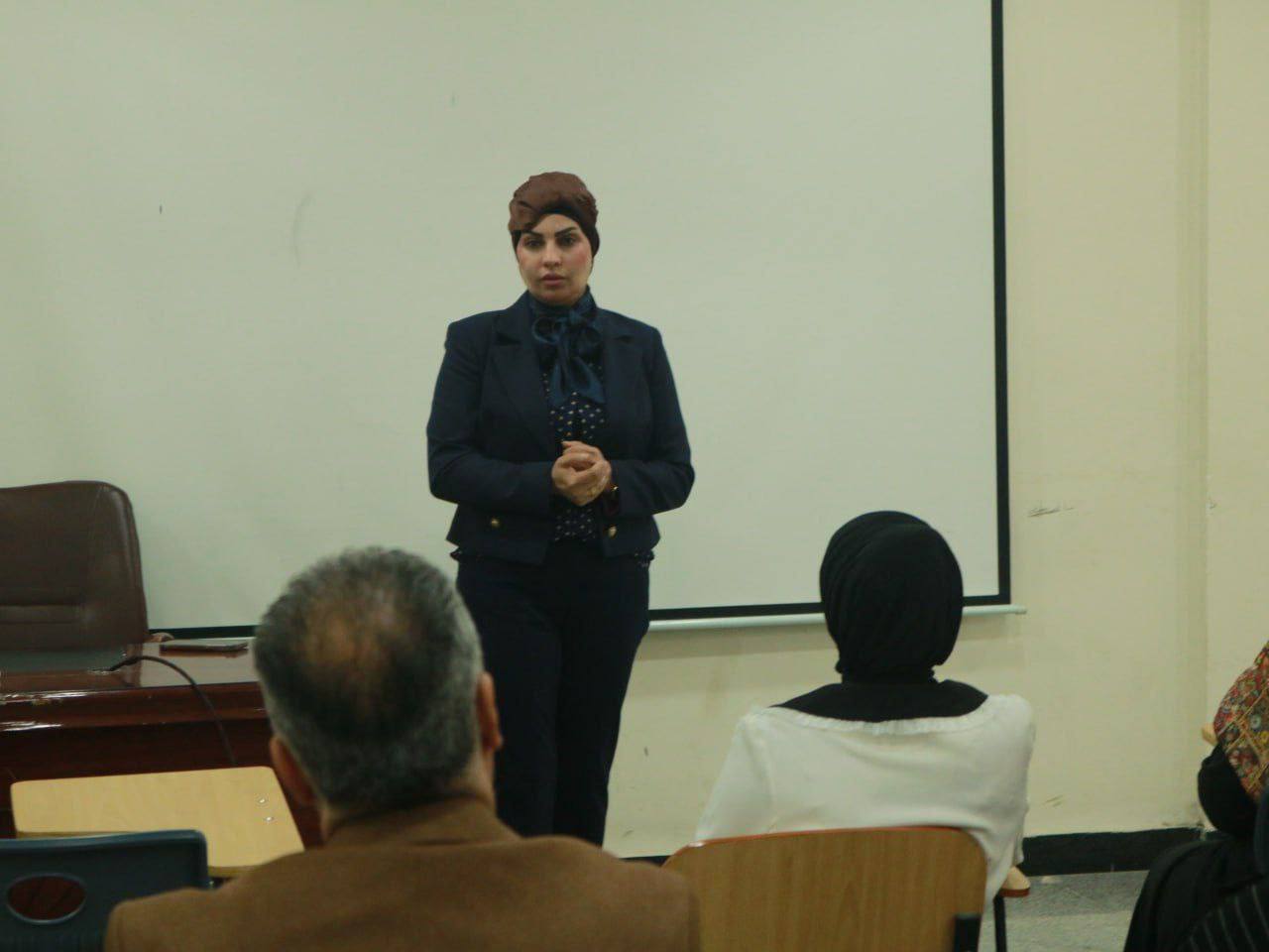 In cooperation with the Federation of Iraqi Chambers of Commerce – Baghdad Chamber of Commerce, the College of Biomedical Informatics at the University of Information Technology and Communications organized a workshop on establishing small businesses. The workshop, delivered by Ms. Muntaha Turki from the Entrepreneurship Department at the Baghdad Chamber of Commerce, aims to develop students’ skills and enhance their awareness of entrepreneurship concepts and company establishment procedures. Such workshops, in collaboration with specialized entities, seek to build students’ professional abilities and open up new horizons and practical opportunities for them, as well as achieve the seventeenth Sustainable Development Goal, which is “partnerships for achieving goals”.