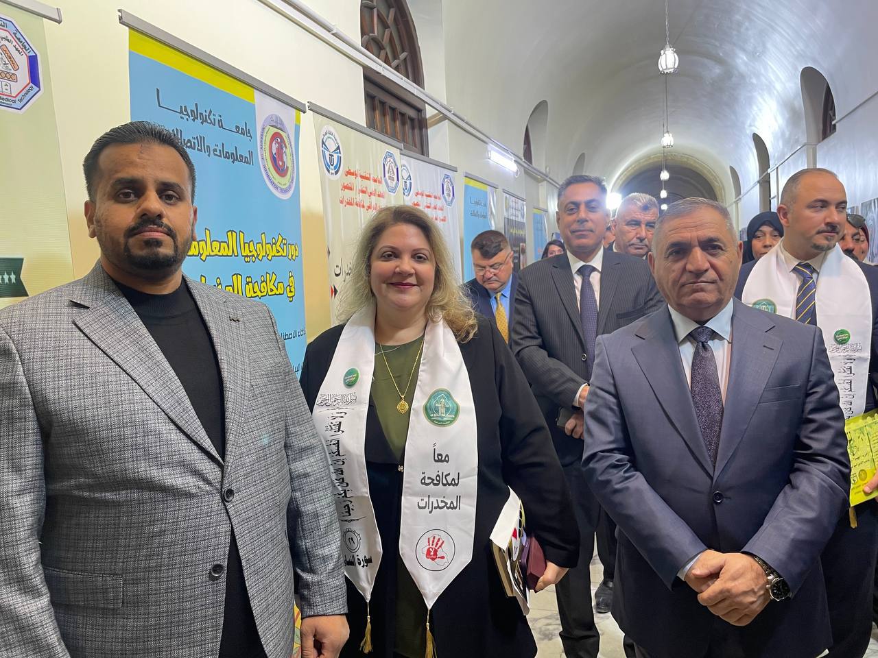 The University of Information Technology participated in the National Scientific Conference entitled “The Role of Educational Institutions in Combating Drug Abuse,” which was hosted by His Excellency the Minister of Higher Education, Dr. Naeem Al-Aboudi. The conference was organized by the Research Department and the College of Islamic Sciences at the Iraqi University, marking the launch of the Anti-Drug Week activities.