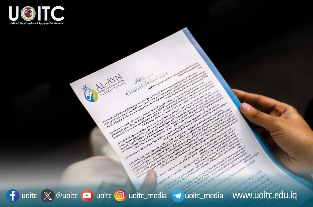 Under the patronage of the President of the University of Information Technology and Communications, Professor Dr. Abbas Mohsen Al-Bakri, the university organized an awareness symposium on orphan care, with Professor Maitham Musa from the Al-Ayn Social Care Foundation participating. The symposium addressed the Foundation’s services, which have benefited more than 203,000 orphans since 2006, and its projects, such as “Bright Stars” and “My Story,” to support orphans educationally. It also discussed the Foundation’s efforts to treat orphans’ psychological trauma and train them in manual professions. The symposium touched upon the foundation’s charitable projects, such as “Ayn,” “Jariyyah,” and “Jariyyah Sadaqah,” which aim to provide sustainable support to those in need, in addition to the foundation’s legal and religious cover, which is the permission granted by His Eminence, the Grand Ayatollah, Sayyid Ali al-Sistani (may Allah prolong his life). For his part, Prof  Al-Bakri presented the university’s shield to the representative of the Al-Ayn Foundation for Social Care, in appreciation of its role in caring for and sponsoring orphans and needy families. This initiative comes in line with the Sustainable Development Goals, particularly Goal 17 and the partnership agreement that serves the community.