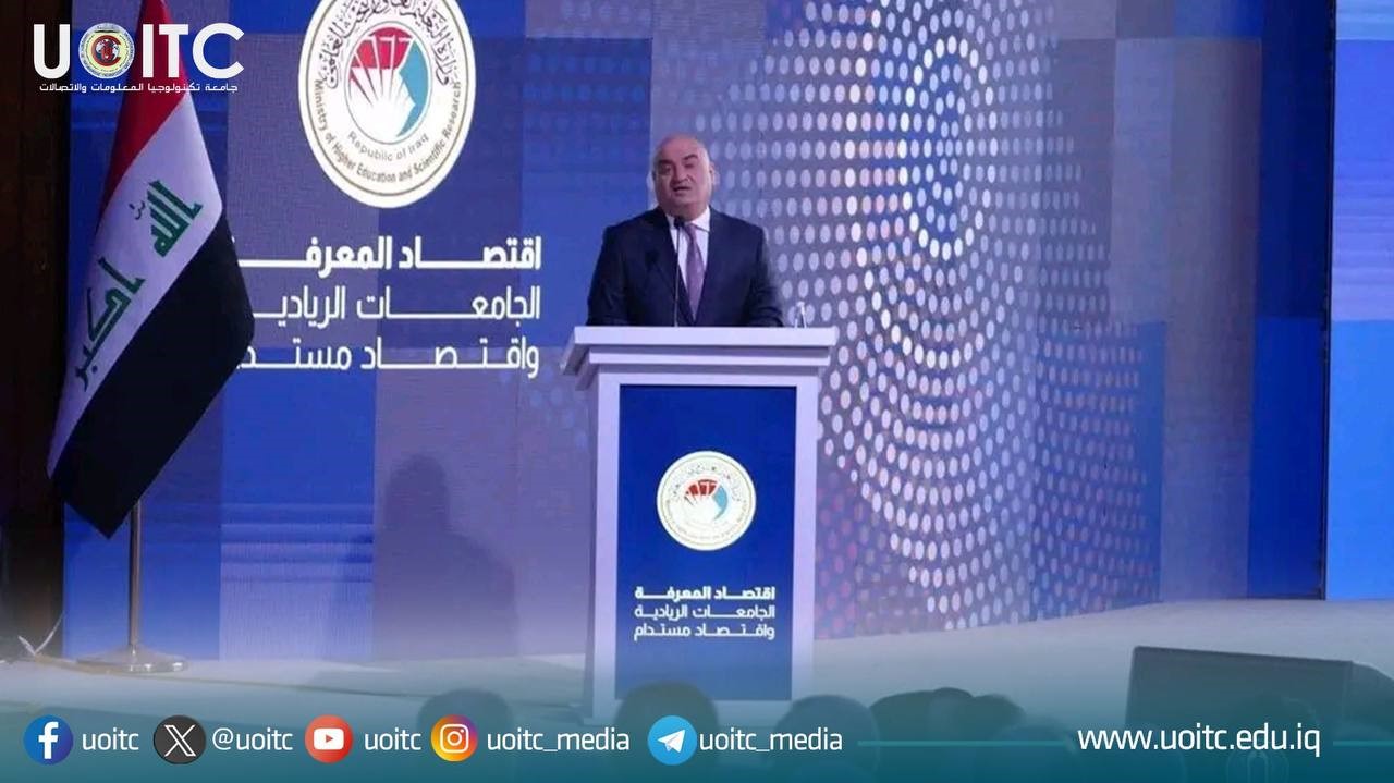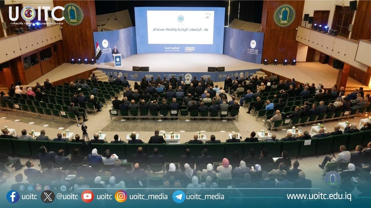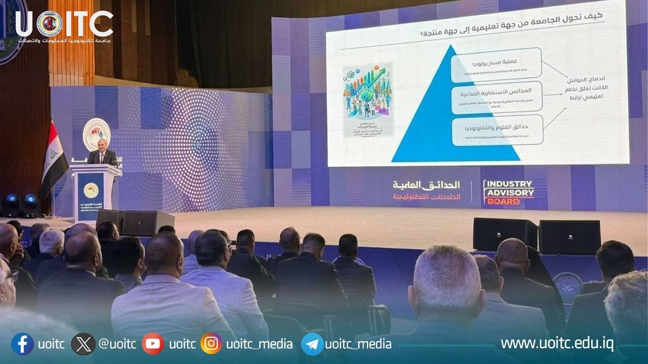 A delegation from the University of Information Technology and Communications participated in the conference organized by the Ministry of Higher Education and Scientific Research under the title “Knowledge Economy: Entrepreneurial Universities and a Sustainable Economy.” The conference addressed several important themes, including the integration of science and technology parks with the Bologna Process, as well as the role of industrial advisory councils in preparing students and meeting labor market demands.