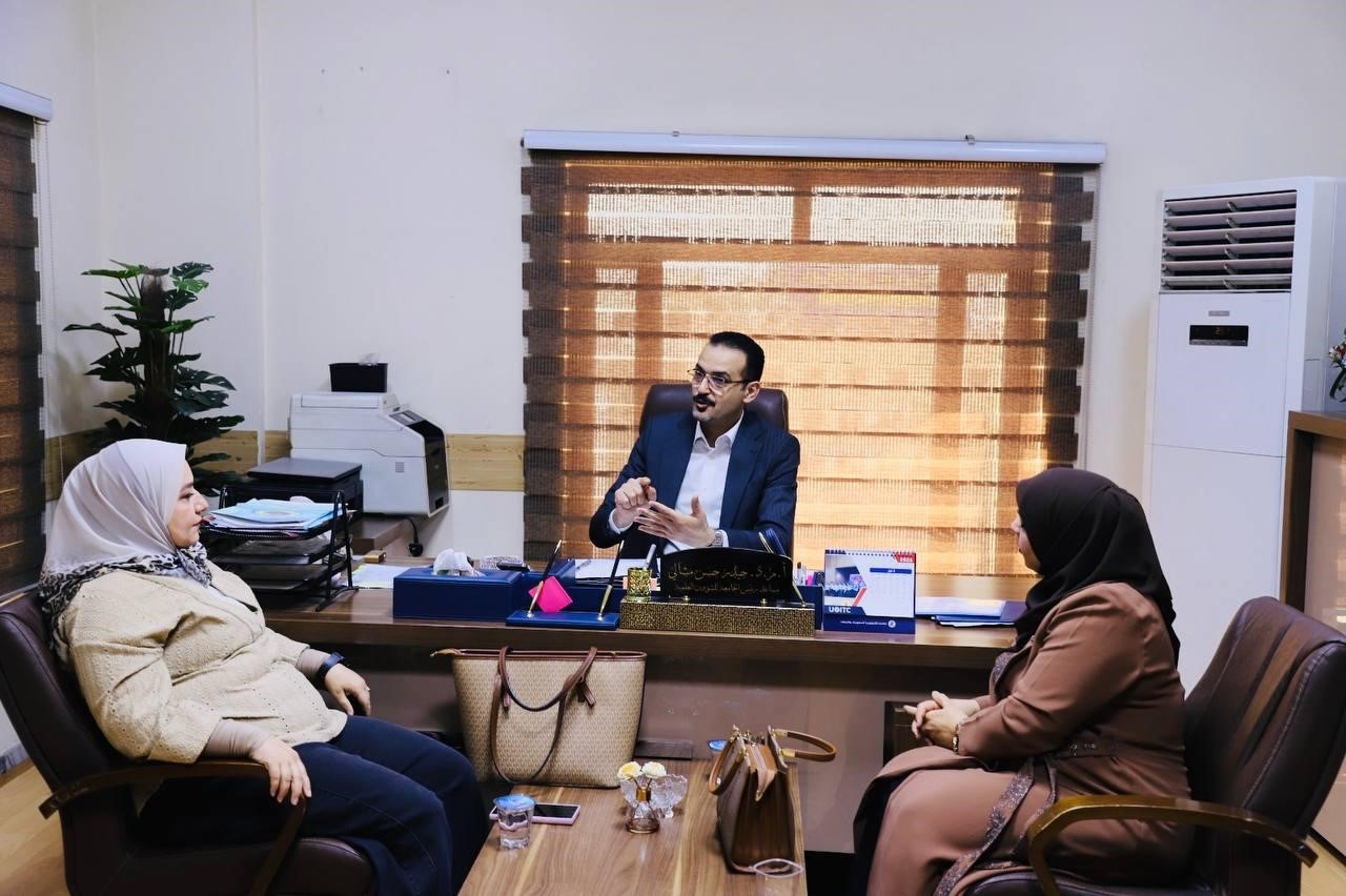Additionally, the delegation met with the Vice President for Scientific Affairs, Assistant Professor Dr. Haider Hassan Mashali, and the Dean of the College of Business Informatics, Assistant Professor Dr. Nagham Hamed.