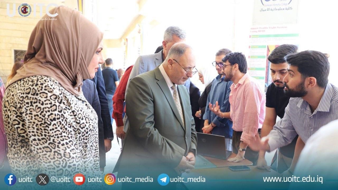 Under the patronage and in the presence of the President of the University of Information Technology and Communications, Prof. Dr. Abbas Mohsen Al-Bakri, and under the supervision of the Dean of the Business Informatics College, Assist. Prof. Dr. Nagham Hamed Abdul Mahdi, the Business Informatics College organized an exhibition dedicated to showcasing the graduation projects of fourth-year students.
