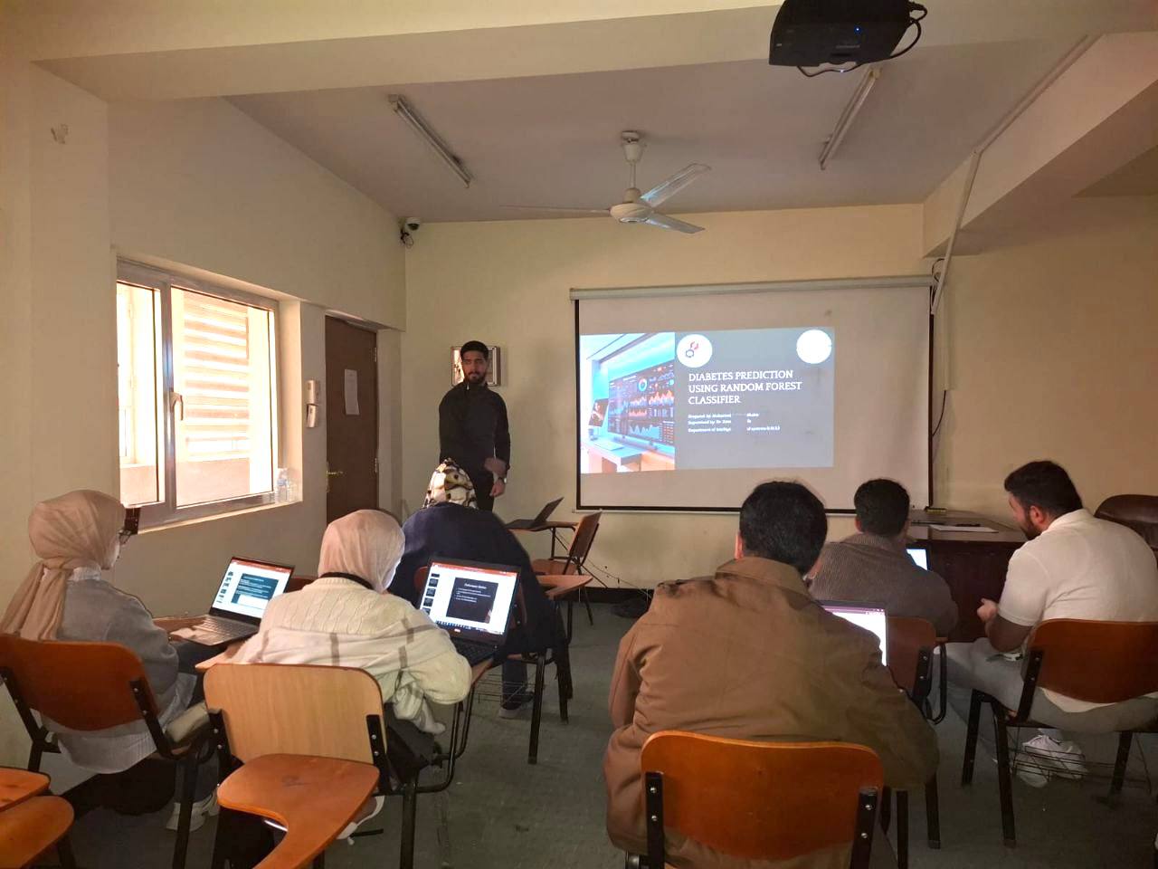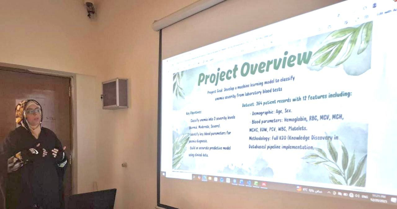The Department of Intelligent Medical Systems at the College of Biomedical Informatics discussed the graduation projects of fourth-year students, supervised by Lecturer Zainab Mustafa, instructor of Medical Data Mining. The students presented a range of applied projects addressing highly important medical topics.