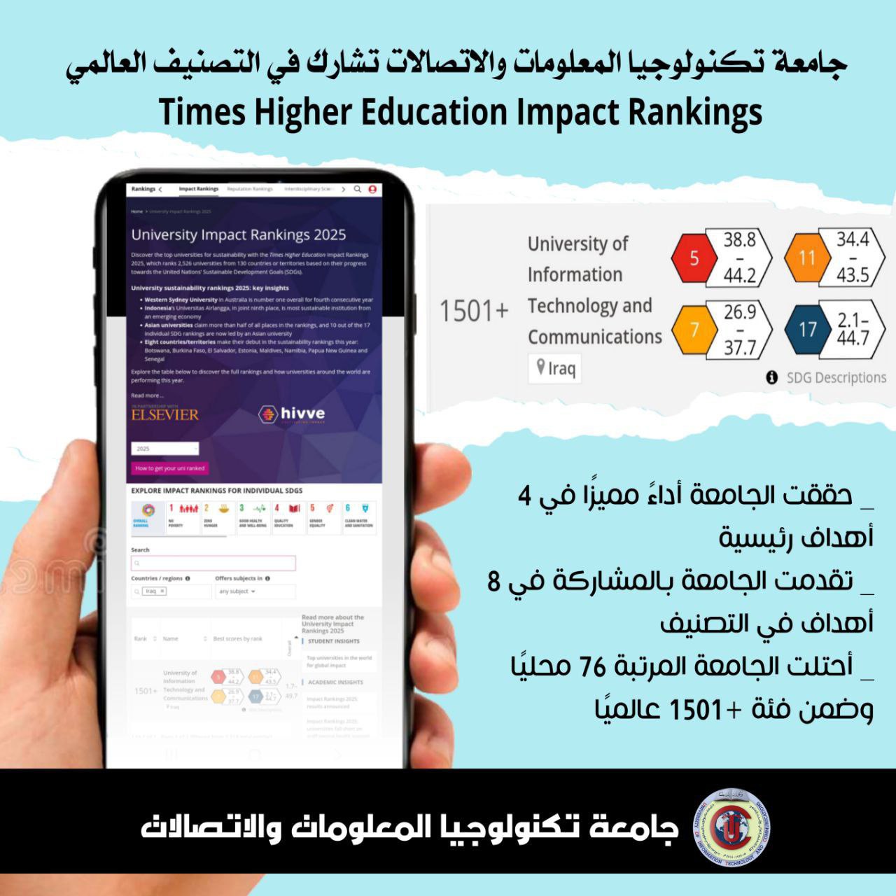( UniRank )جامعة تكنولوجيا المعلومات والاتصالات تحقق انجازا علمي اخر من خلال دخولها لتصنيف الــ