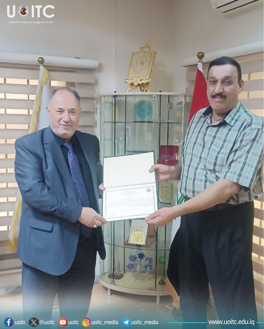 حصول المساعد العلمي على شهادة تقديرية ودرع كلية المنصور الجامعة