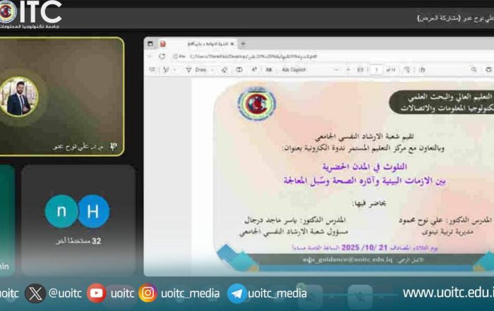 Safaa Jawad2025-12-05T13:39:14+03:00اختتام مشاركة تدريسيي جامعة تكنولوجيا المعلومات والاتصالات في الدورة الثامنة لإعداد المدربينSafaa Jawad2025-12-05T13:39:14+03:00
