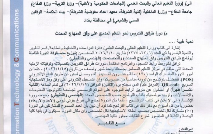 Safaa Jawad2026-01-20T13:34:08+03:00مركز التعليم المستمر يعلن اسماء المقبولين في دورة طرائق التدريس (للتخصصات الهندسية والتطبيقية )Safaa Jawad2026-01-20T13:34:08+03:00