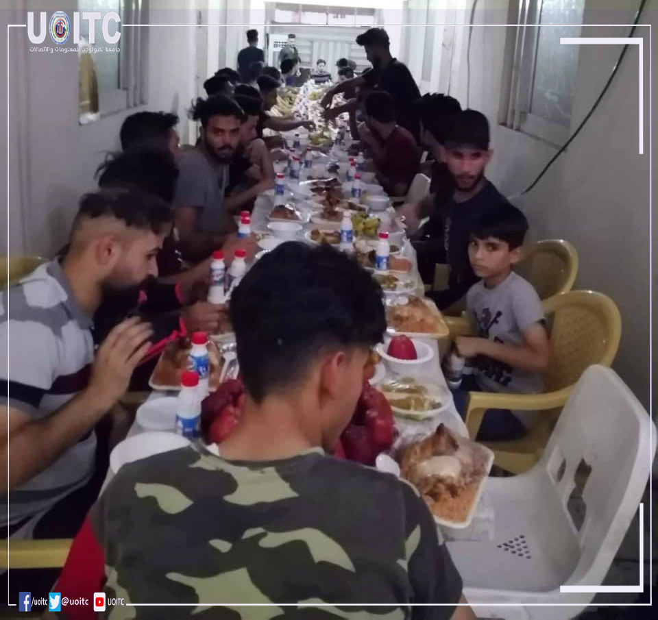 بحضور ورعاية رئيس جامعة تكنولوجيا المعلومات والاتصالات الدكتور عباس محسن البكري أقيم إفطار للطلاب في المهاجع برفقة مجموعة من أساتذة الجامعة. كما حضر الإفطار مساعد عميد كلية الهندسة ورئيس قسم هندسة تكنولوجيا المعلومات وعدد من الموظفين.