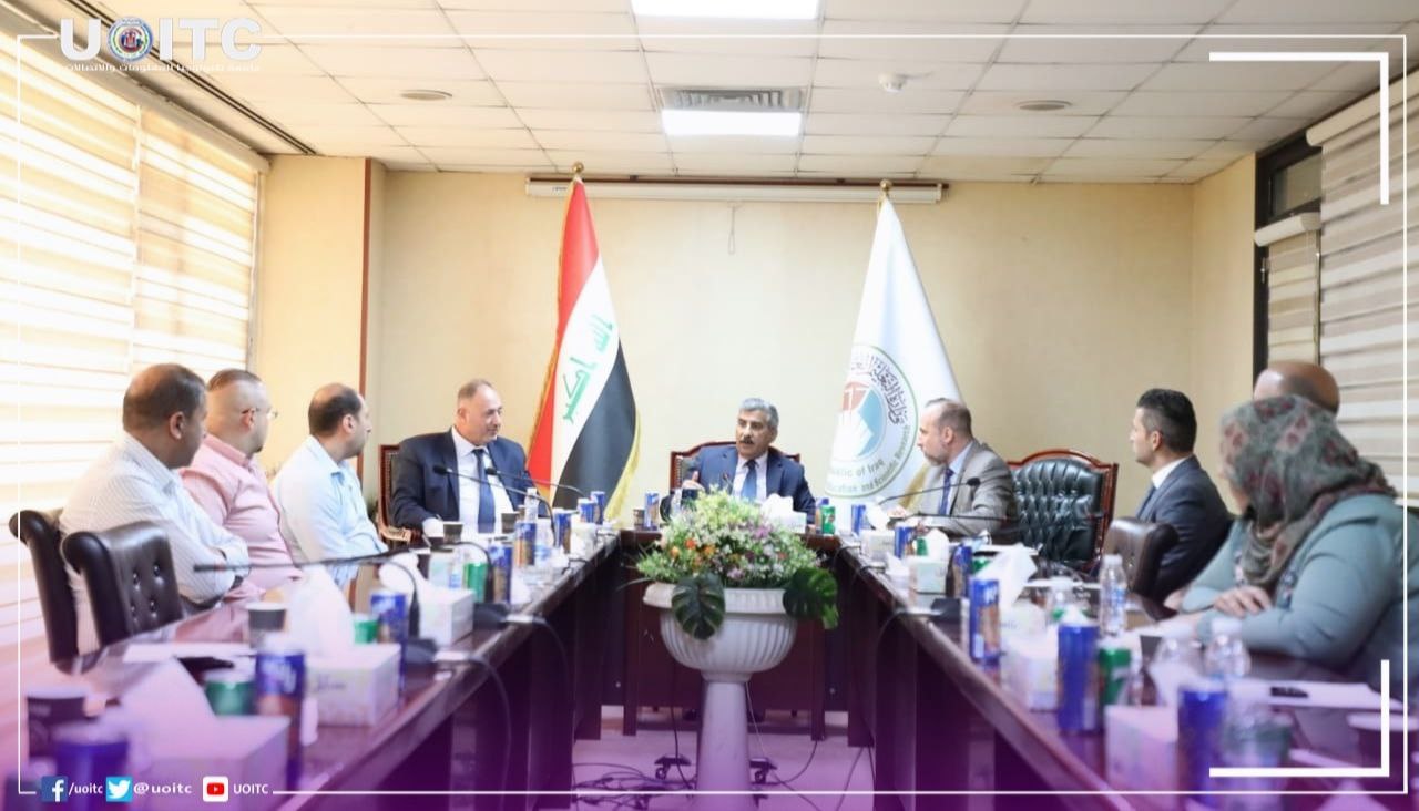 وجرى خلال اللقاء بحضور وكيل الوزارة للبحث العلمي الأستاذ الدكتور ياسين العيثاوي ورئيس جامعة تكنولوجيا المعلومات والاتصالات الأستاذ الدكتور عباس محسن البكري بحث الاستعدادات اللازمة لتهيئة نظام القبول المركزي بعد استلام البوابات الإلكترونية للقناة العامة وأسر الشهداء من جامعة تكنولوجيا المعلومات والاتصالات.