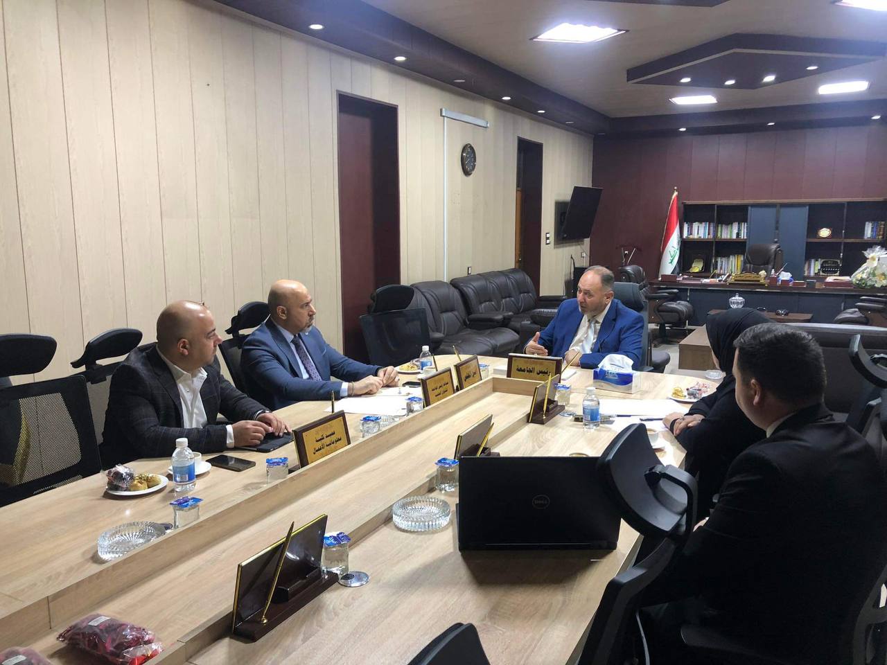 والاطلاع على نموذج شهادات المشاركة في هذه الورش ، فضلاً عن مناقشة ماتم انجازه من الورش لهذه السنة (ورشة منصة انشاء الخدمات الالكترونية و ورشة منصة البيانات الذكية)، وامكانية دعم الجامعة لانجاز وتنفيذ الورش والدورات التطويرية.