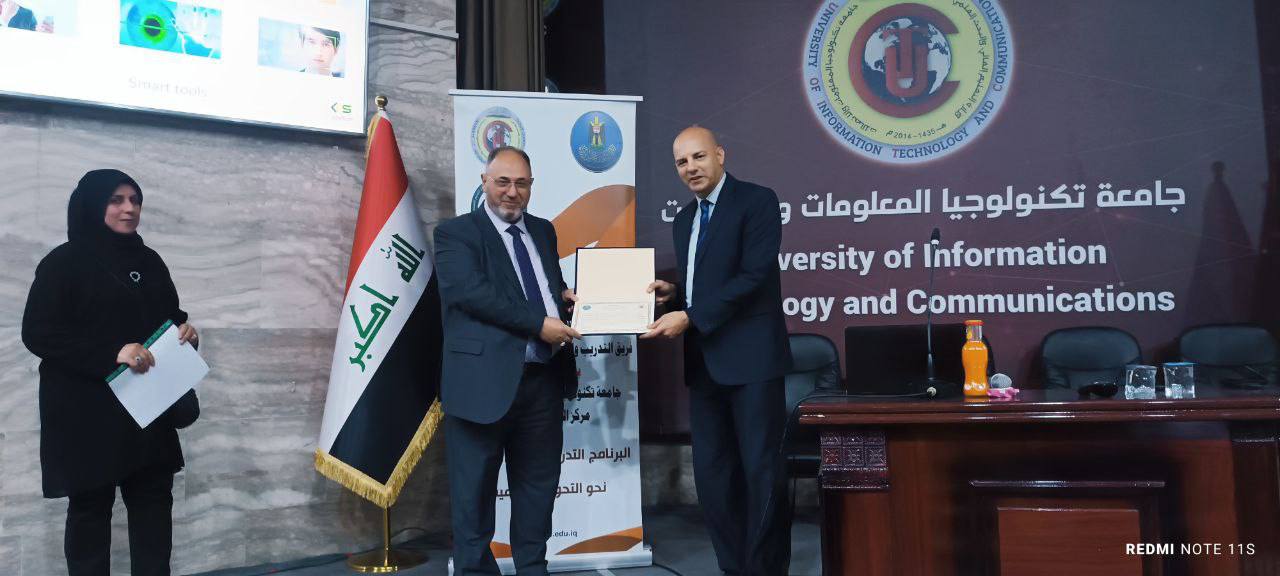 نظم مركز التعليم المستمر في الجامعة بالتعاون مع الامانة العامة لمجلس الوزراء/ لجنة تنسيق وإدارة النشاط الحكومي باتجاه الحكومة الالكترونية فريق التدريب والتطوير والدعم الدولي الورشة التطويرية الثالثة ضمن المرحلة الرابعة في عام 2024 للبرنامج التدريبي لبناء القدرات لموظفي مؤسسات الدولة نحو التحولات الالكترونية حول التقنيات المتقدمة للحكومة الإلكترونية E Gov. Advance Technologies .