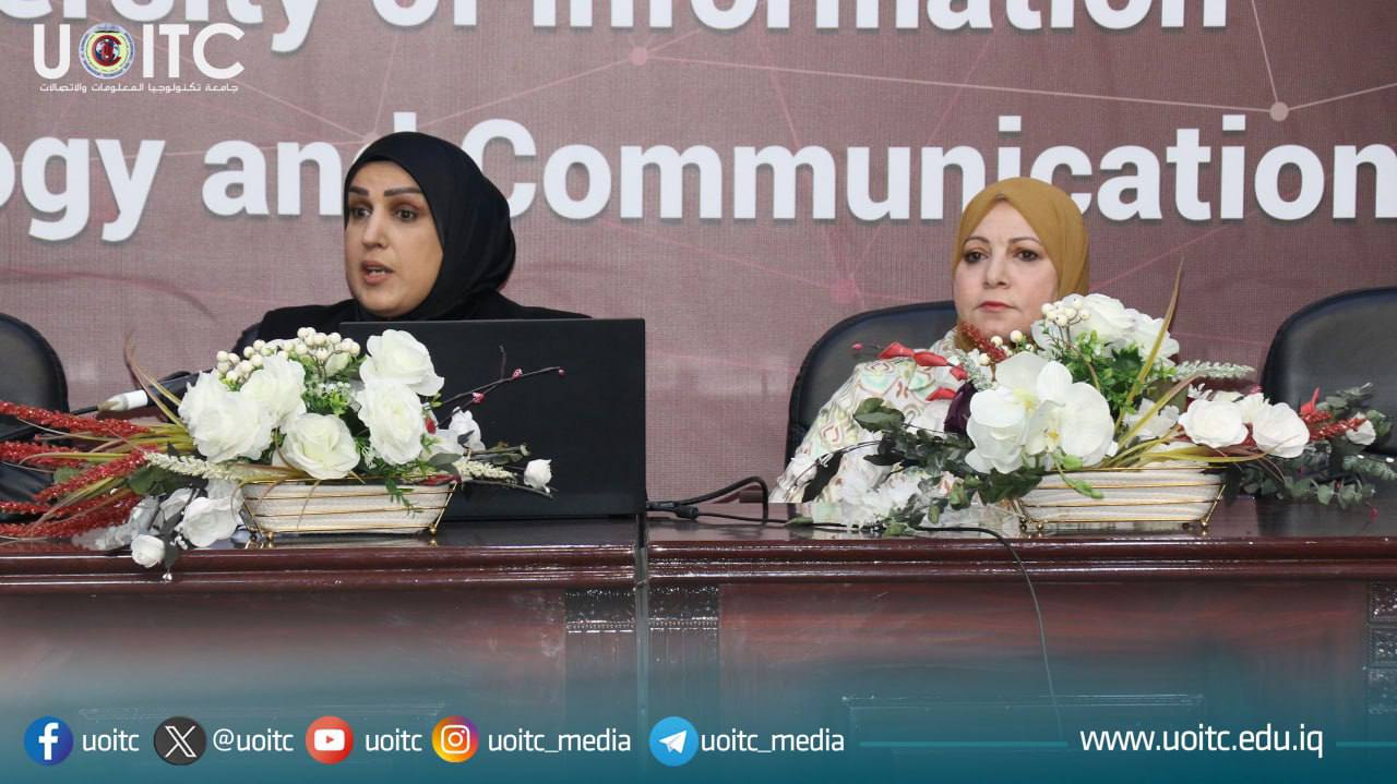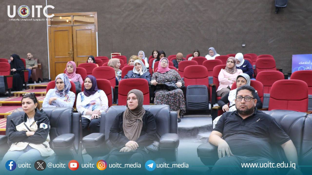 تطبيقاً لتوجيهات وزارة التعليم العالي والبحث العلمي وتنفيذاً للخطة الاستراتيجية للمرأة، نظمت شعبة شؤون المرأة بالتعاون مع مركز التعليم المستمر في جامعة تكنولوجيا المعلومات والاتصالات، محاضرة توعوية بعنوان: “الحماية القانونية للمرأة الموظفة وسبل تمكينها إدارياً”، قدّمتها التدريسية في القسم القانوني م.م. رنا جاسم محمد.
