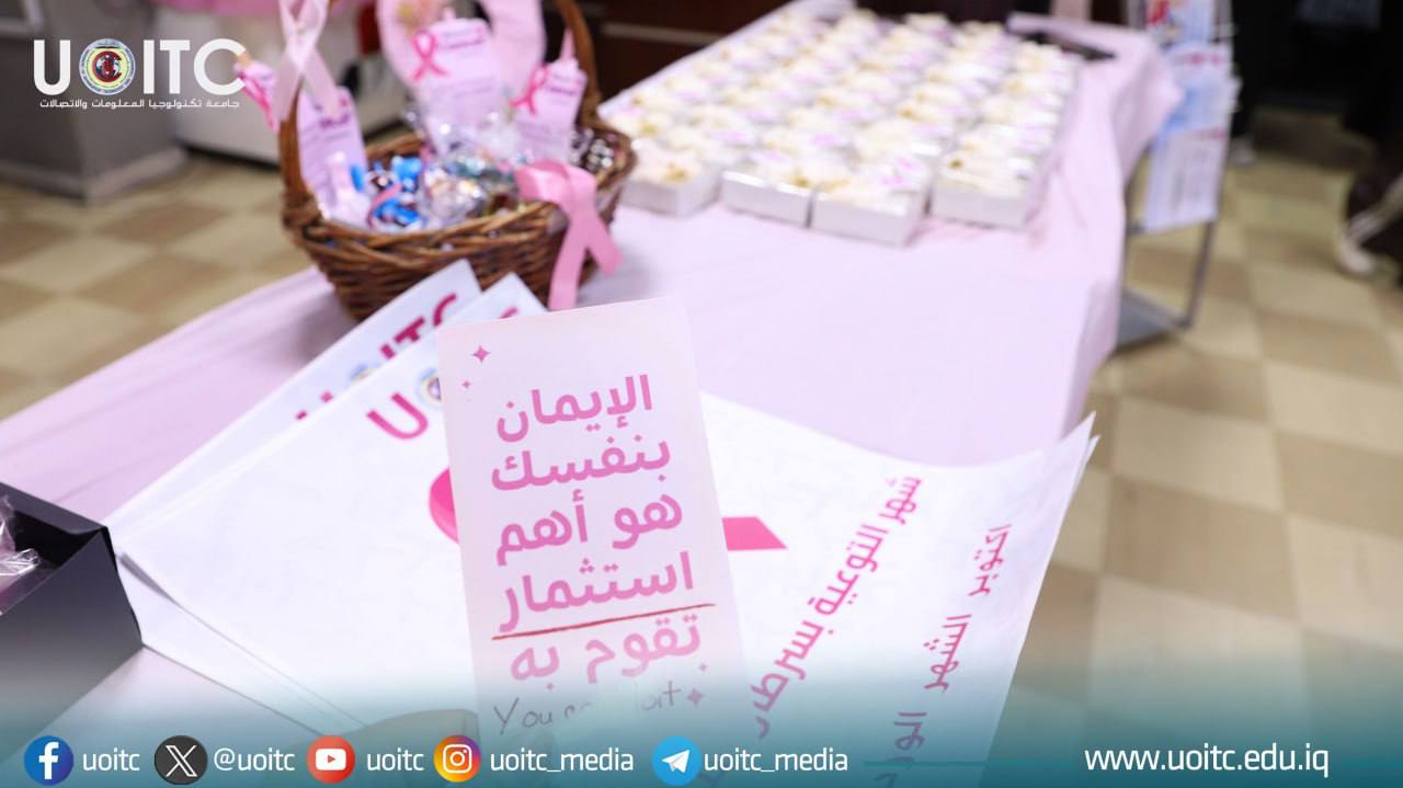 نظّمت شعبة شؤون المرأة في رئاسة جامعة تكنولوجيا المعلومات والاتصالات حملة توعوية بمناسبة الشهر الوردي، تحت شعار “معاً للحد من سرطان الثدي”، بهدف نشر الوعي بأهمية الكشف المبكر وتعزيز ثقافة الوقاية من المرض.