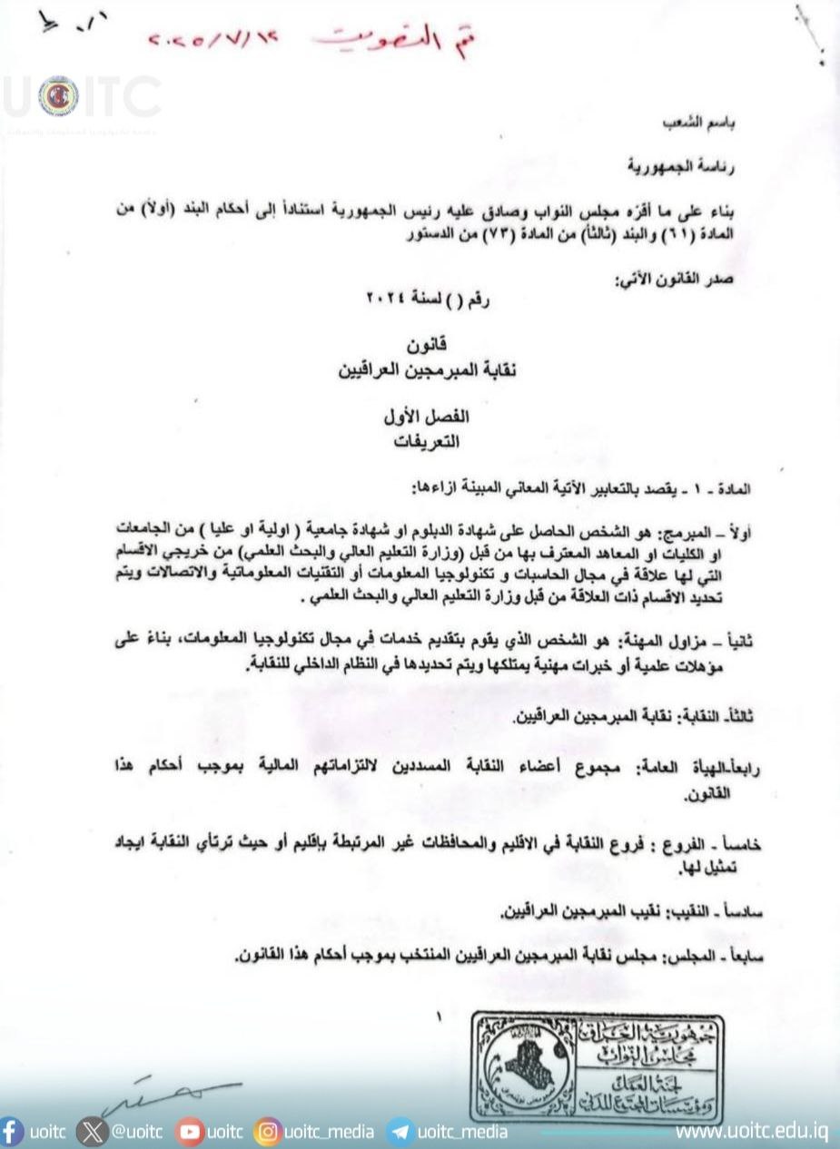 نص قانون المبرمجين العراقيين 👇
