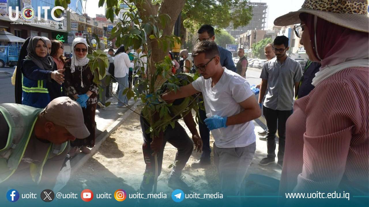 شاركت ملاكات كلية المعلوماتية الطبية الحيوية في جامعة تكنولوجيا المعلومات والاتصالات في حملة التشجير الكبرى التي أطلقتها أمانة بغداد / دائرة بلدية مركز الكرخ برعاية رئيس مجلس الوزراء، ضمن المبادرة المجتمعية الهادفة إلى تعزيز الوعي البيئي وزيادة المساحات الخضراء في العاصمة.