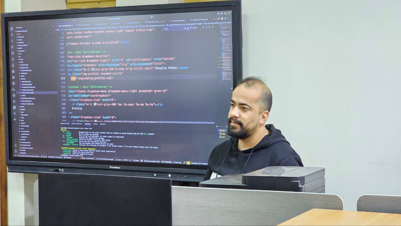 وتناول البرنامج التدريبي التعريف بإطار العمل Laravel الذي يُعد من أحدث أُطر PHP المستخدمة في تطوير تطبيقات الويب، لما يمتاز به من سهولة الاستخدام، ومرونة عالية، ومستوى متقدم من الأمان، إضافةً إلى اعتماده على نمط MVC (Model-View-Controller) في تنظيم وتنفيذ مكوّنات التطبيق.