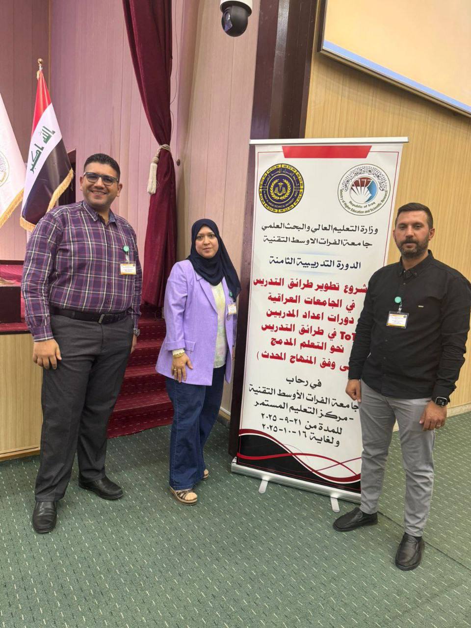 اختتم عدد من تدريسيي جامعة تكنولوجيا المعلومات والاتصالات مشاركتهم بنجاح في الدورة الثامنة لإعداد المدربين في طرائق التدريس (TOT)، التي نظمتها وزارة التعليم العالي والبحث العلمي في جامعة الفرات الأوسط التقنية.