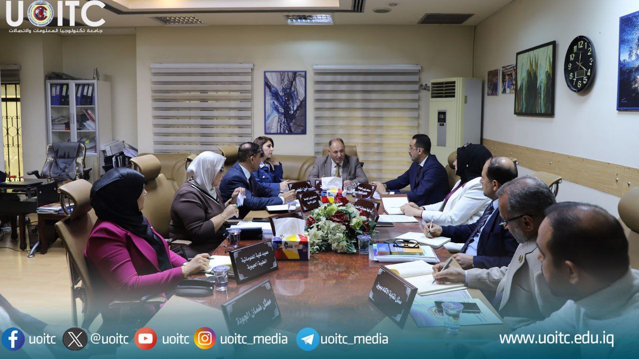 عقد مجلس جامعة تكنولوجيا المعلومات والاتصالات جلسته الاعتيادية برئاسة السيد رئيس الجامعة الاستاذ الدكتور عباس محسن البكري لمناقشة عدد من الملفات المرتبطة بفعاليات ونشاطات الجامعة، إضافة إلى متابعة مستجدات العمل الأكاديمي والإداري في الكليات والأقسام.