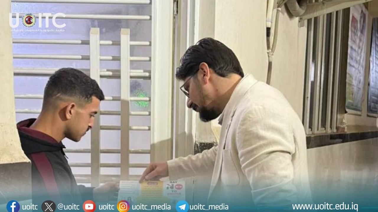 ضمن فعاليات الأسبوع العراقي لمكافحة المخدرات نفذت كلية معلوماتية الأعمال حملة توعوية موجهة لطلبة الأقسام الداخلية، حيث قام مسؤول وحدة الإرشاد النفسي الجامعي في الكلية المدرس بلال إبراهيم بكري، بزيارة الأقسام الداخلية وتوزيع بروشورات تثقيفية تهدف إلى تعزيز الوعي بمخاطر المخدرات وآثارها الصحية والنفسية والاجتماعية.