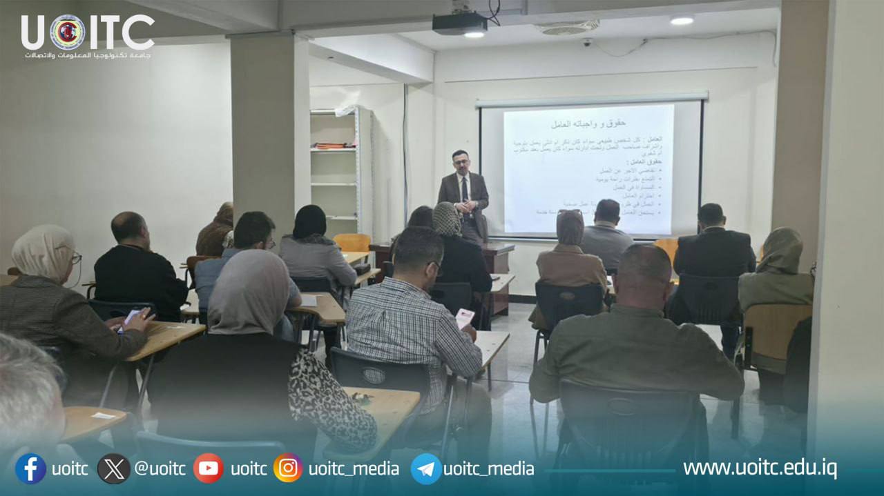 نظمت وحدة شؤون المرأة في كلية المعلوماتية الطبية الحيوية بجامعة تكنولوجيا المعلومات والاتصالات ندوة توعوية حول “قانون العمل والضمان الاجتماعي بين النص والتطبيق”، ألقاها م.د. محمد كريم علي، بحضور عدد من التدريسيين والموظفين والطلبة.