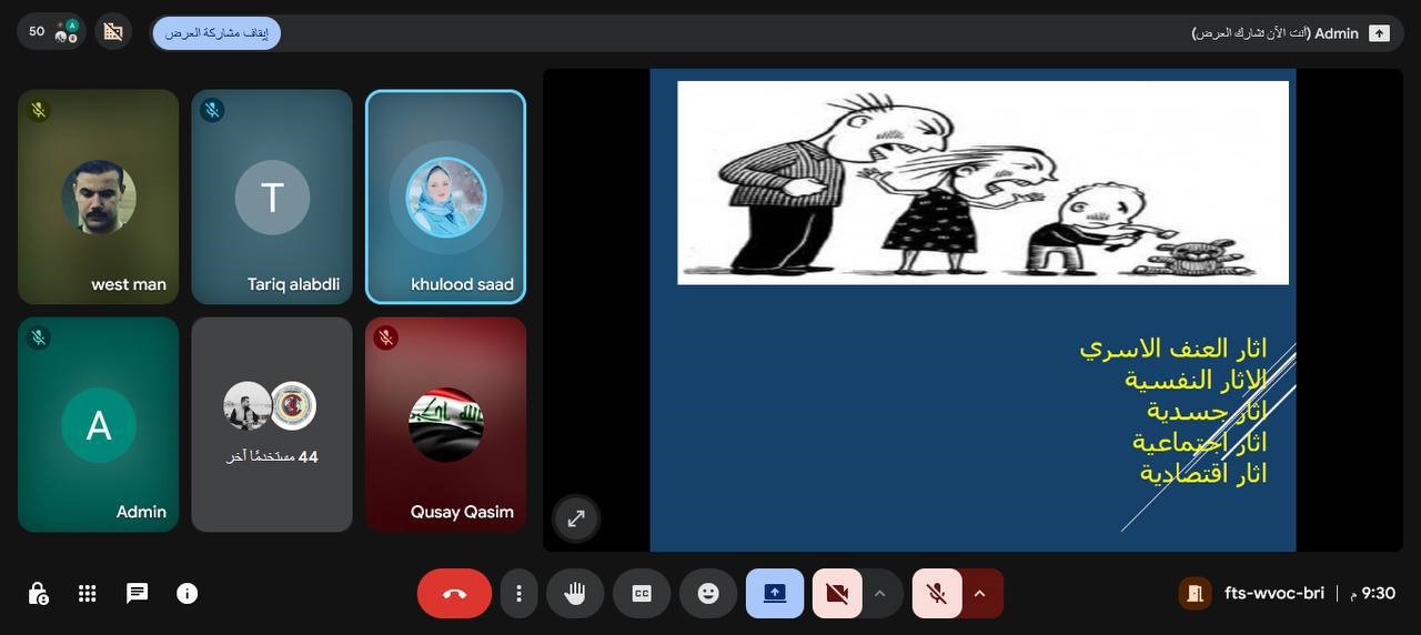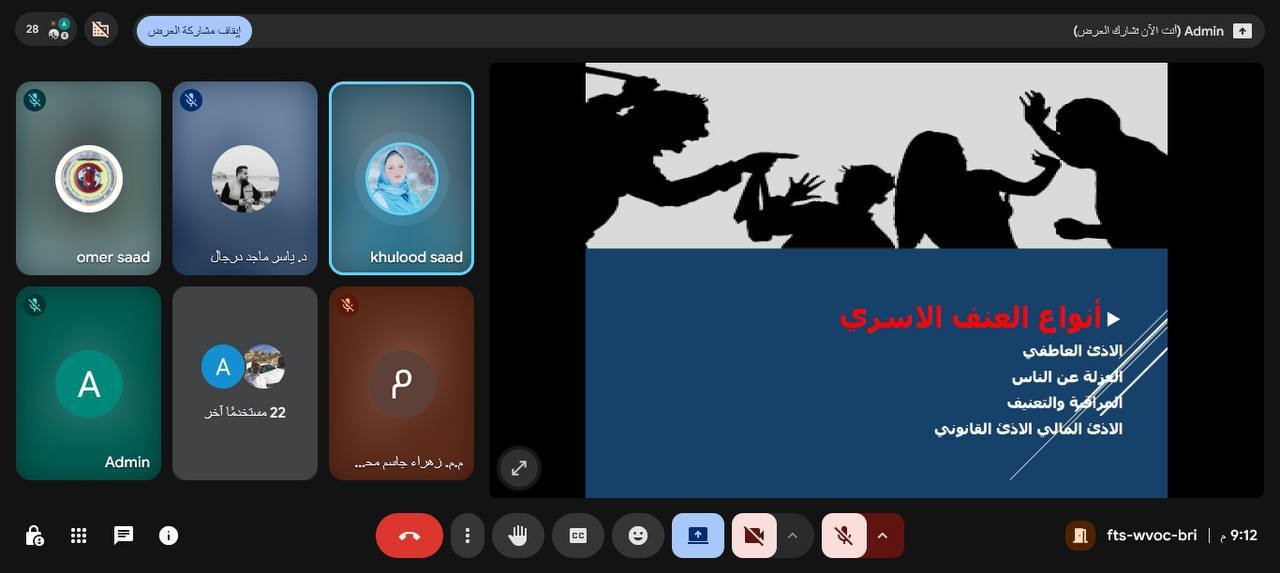 وتناولت الندوة التي قدمتها التدريسية في الشعبة م.م. خلود سعد محمد، مفهوم العنف الأسري بوصفه سلوكاً مؤذياً يحدث داخل نطاق الأسرة، موجهاً إلى أحد أفرادها، ويتخذ أشكالاً متعددة كالعنف الجسدي أو النفسي أو الاقتصادي أو الاجتماعي، مما ينعكس سلباً على استقرار الأسرة ويؤدي إلى ضعف العلاقات بين أفرادها.