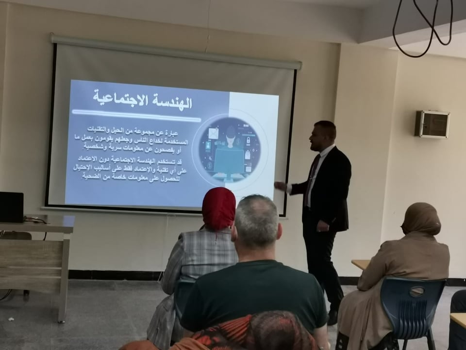 وضحت الورشة مفهوم الابتزاز الالكتروني، وانواعه، وكيفية حماية انفسنا من الابتزاز، والهندسة الاجتماعية، وانواع الهندسة الاجتماعية، وكيفية تفادي هجمات الهندسة الاجتماعية، وايضا تم توضيح كيفية انشاء كلمات مرور قوية وكيفية اختبار قوة كلمة المرور عن طريق مواقع متخصصة، وكيفية فحص الروابط وتمييز الرابط السليم من الاحتيالي وماهو فرق بين https/http وماهي الخطوات التي يجب اتباعها في حال اذا ضغطنا على الرابط ملغم وكيف نمييز الروابط الاحتيالية والروابط الحقيقية (روابط تصيد لمواقع تواصل الاجتماعي) وكيفية حماية الاجهزة من الاختراق وسبل الوقاية من الوقوع لهجمات المخترقين.