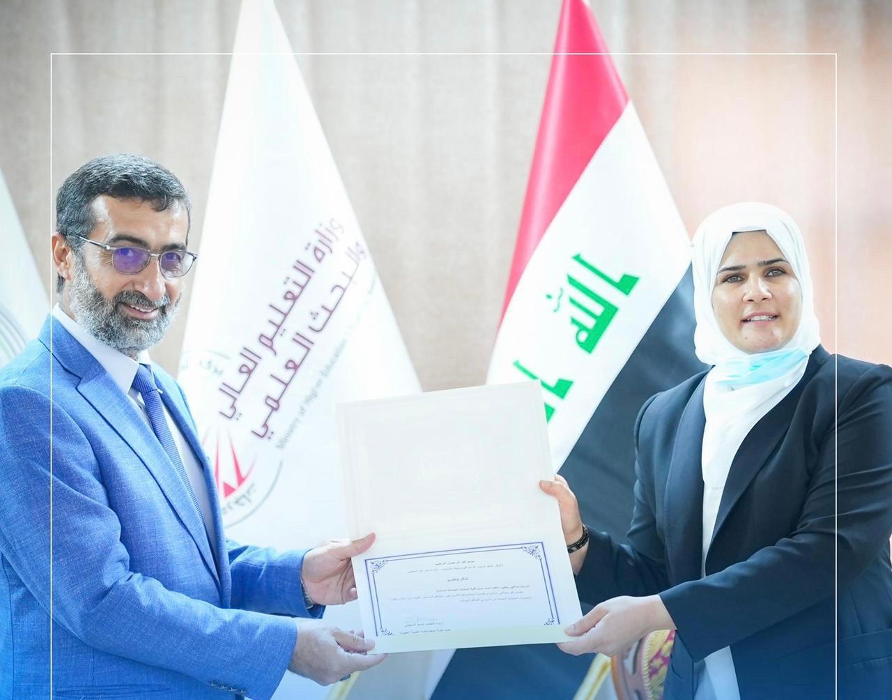 ورافق السيدة العميد ، الدكتور (عماد الكعبي ) رئيس قسم النشاطات الطلابية في جامعة تكنولوجيا المعلومات والاتصالات.