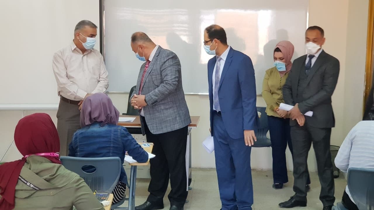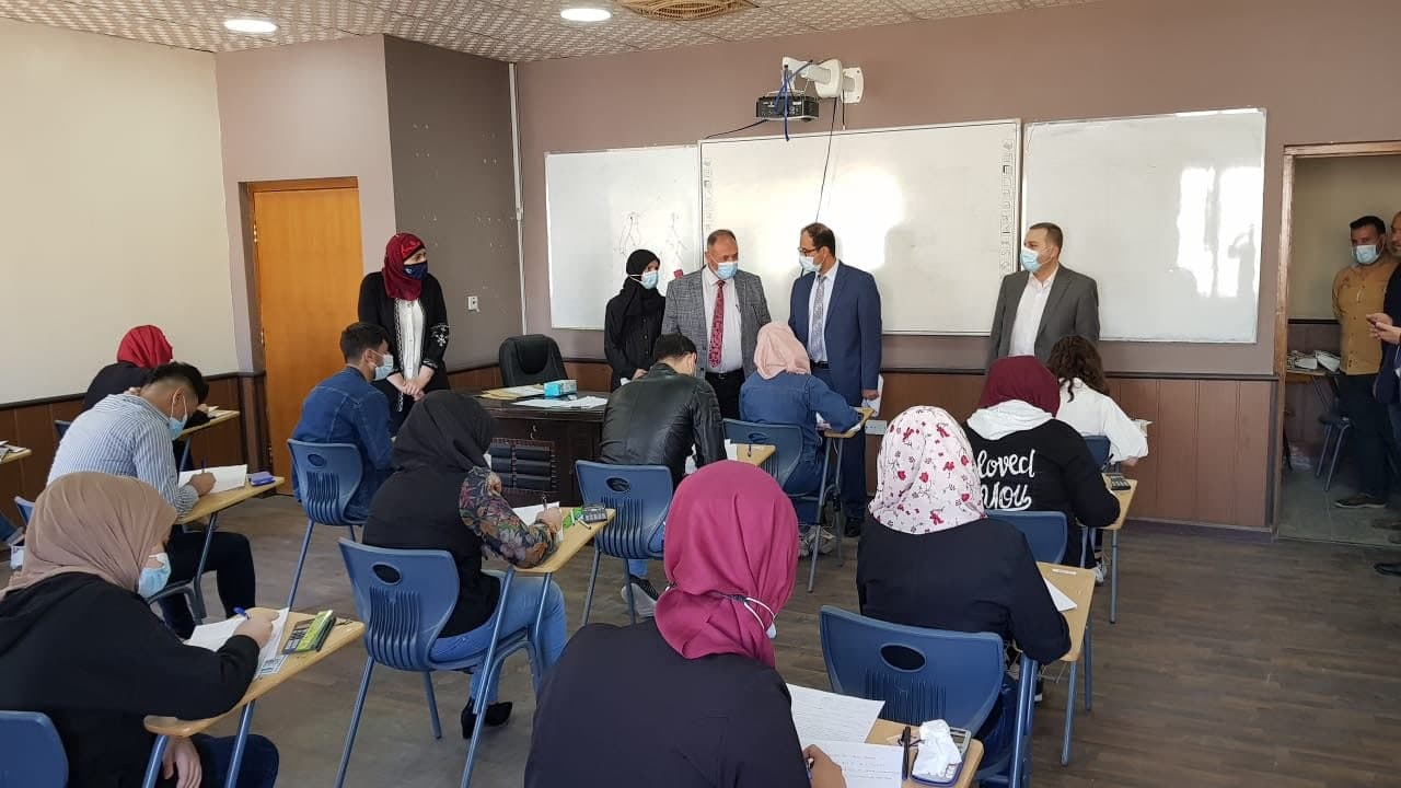 وقد شهدت الكلية اليوم زيارة تفقدية من قبل السيد رئيس الجامعة الاستاذ الدكتور عباس البكري وبحضور السيد العميد الاستاذ الدكتور مؤيد عبدالرضا صاحب والسادة رؤساء الاقسام ، للاشراف على العملية الامتحانية وللوقوف على الاجراءات الاحترازية والتدابير الوقائية التي اتخذتها الكلية لتهيئة الظروف الملائمة لاستقبال طلبتها ضمن قاعاتها الامتحانية من حيث التعفير المسبق لمبنى الكلية ، وفحص درجات الحرارة لكافة الطلبة والمنتسبين ، وتطبيق اجراءات السلامة التي اوصت بها وزارة الصحة من ارتداء الكمامة ، والحفاظ على التباعد الاجتماعي بين الطلبة ، وتوفير المعقمات ، وتهيئة اجواء التهوية المناسبة.